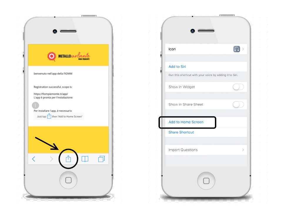 2. Cliccare sull’ icona e selezionare “Add to Home Screen”